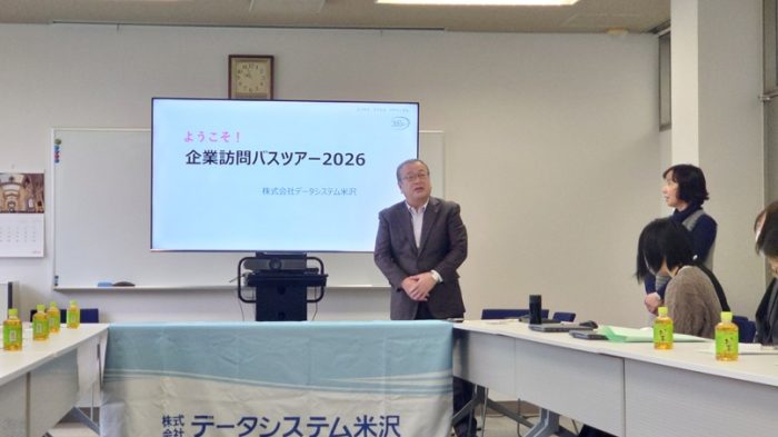 昨年に引き続き、今年も山形県立米沢女子短期大学・山形県立米沢栄養大学の学生の皆さんを対象とした、市内企業訪問バスツアーが開催されました。